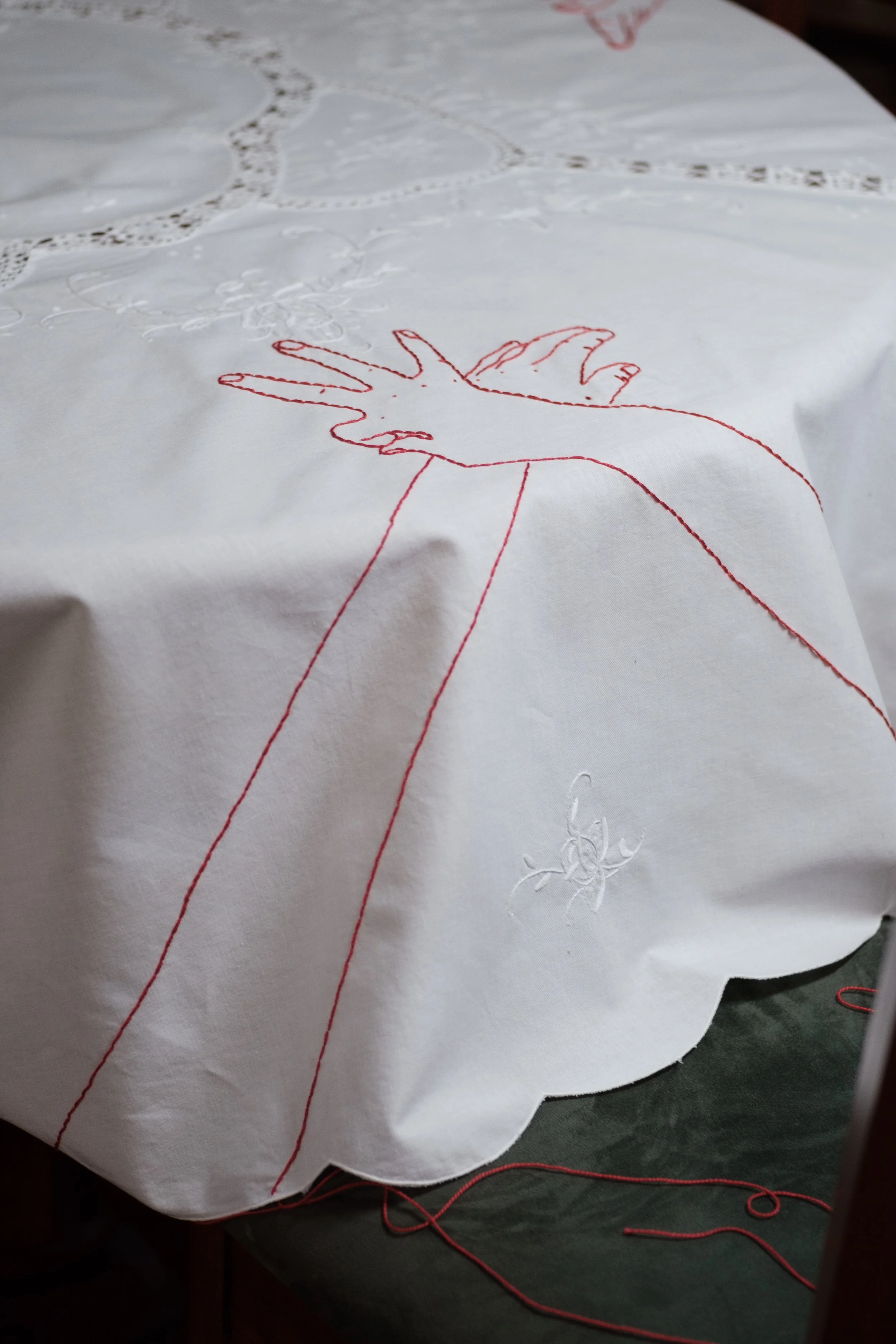 vintage tablecloth, cotton threads